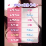 4月28日 20時 ~ 0時4月29日 18時 〜 0時4月30日 お休み5月1日 17時 〜 0時5月2日 お休み5月3日 未定5月4日 お休み5月5日 お休み5月6日 17時 〜 0時5月7日 17時 〜 0時5月8 […]