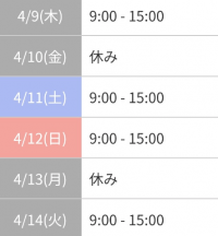 9:00〜 10:00〜 11:00〜