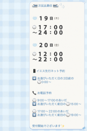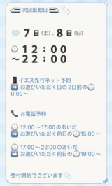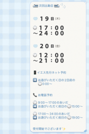 | 9:00~ | |
