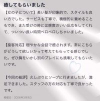 プレイも丁寧で積極的で密着感が凄く上手で本当に指名をしてよかったと感じました。また是非お願いします(^^)
