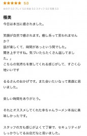 【CLASS EXECUTIVE】 60分¥28,000(税込¥30,800) 70分¥33,000(税込¥36,300) 100分¥43,000(税込¥47,300) 指名料¥2,000(税込¥2,200) 延長30分¥20,000(税込¥22,000) 【お客様の声】 ・本当にキレかわいくて清潔感がありスレンダーなのにスタイルも抜群で見惚れてしまいました(^^)お肌も色白でスベスベのもちもち。気遣いの優しさも随所にあり時間いっぱい癒されました。(9/26) ・カーテンを開けた瞬間「アイドル」と思ってしまう程キレカワのスレンダー美女が居ました。プレイに入るととても敏感で興奮度はマックスになりました。るるさんありがとう(^^)(10/4) |